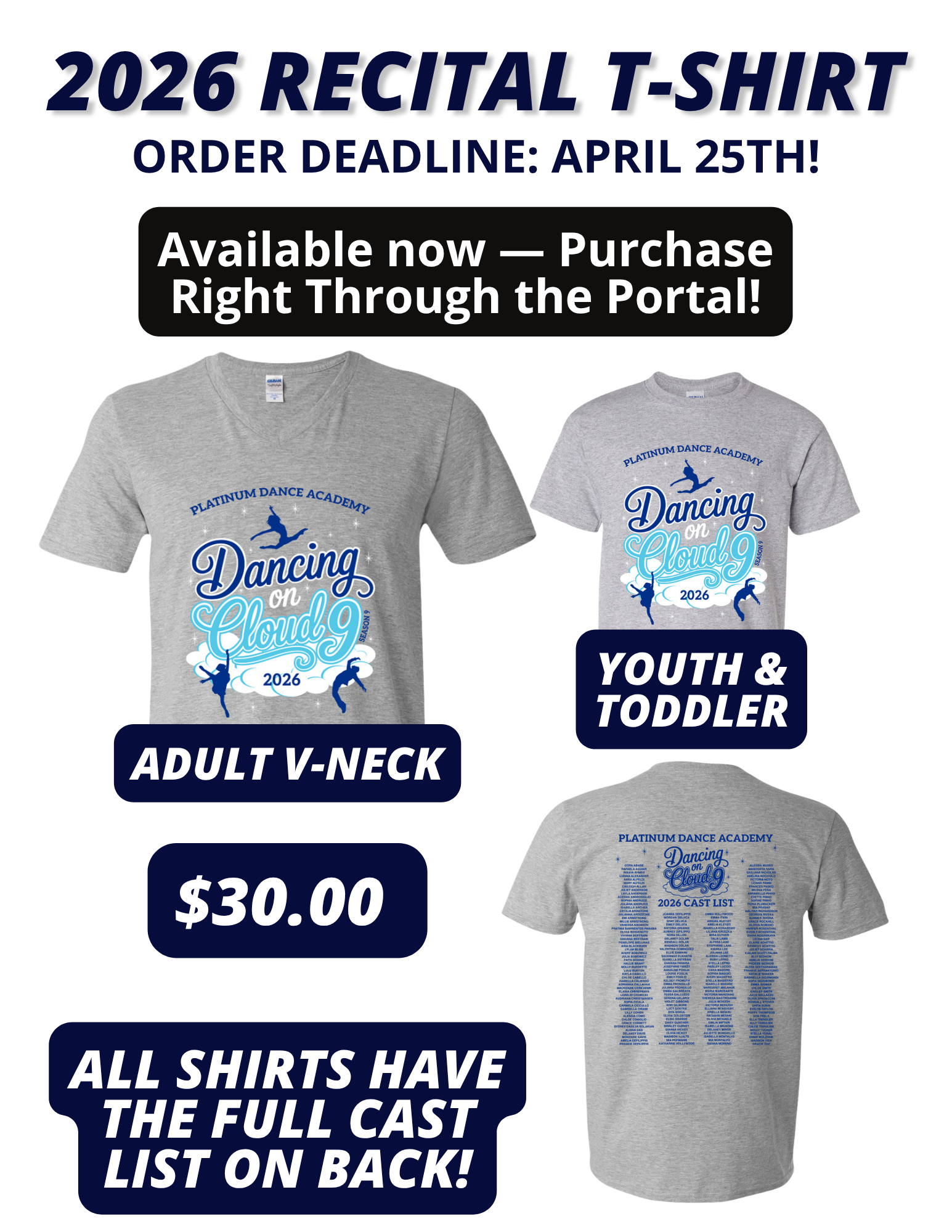 Order & pay directly through your parent portal under “Store” and take home a lasting memory of the 2026 recital!